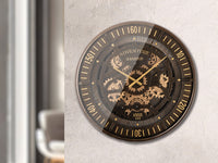 Wall clock, round, Gear wheel motif, Metal, bronze colored, PU 1, L. 8 cm, D. 59 cm